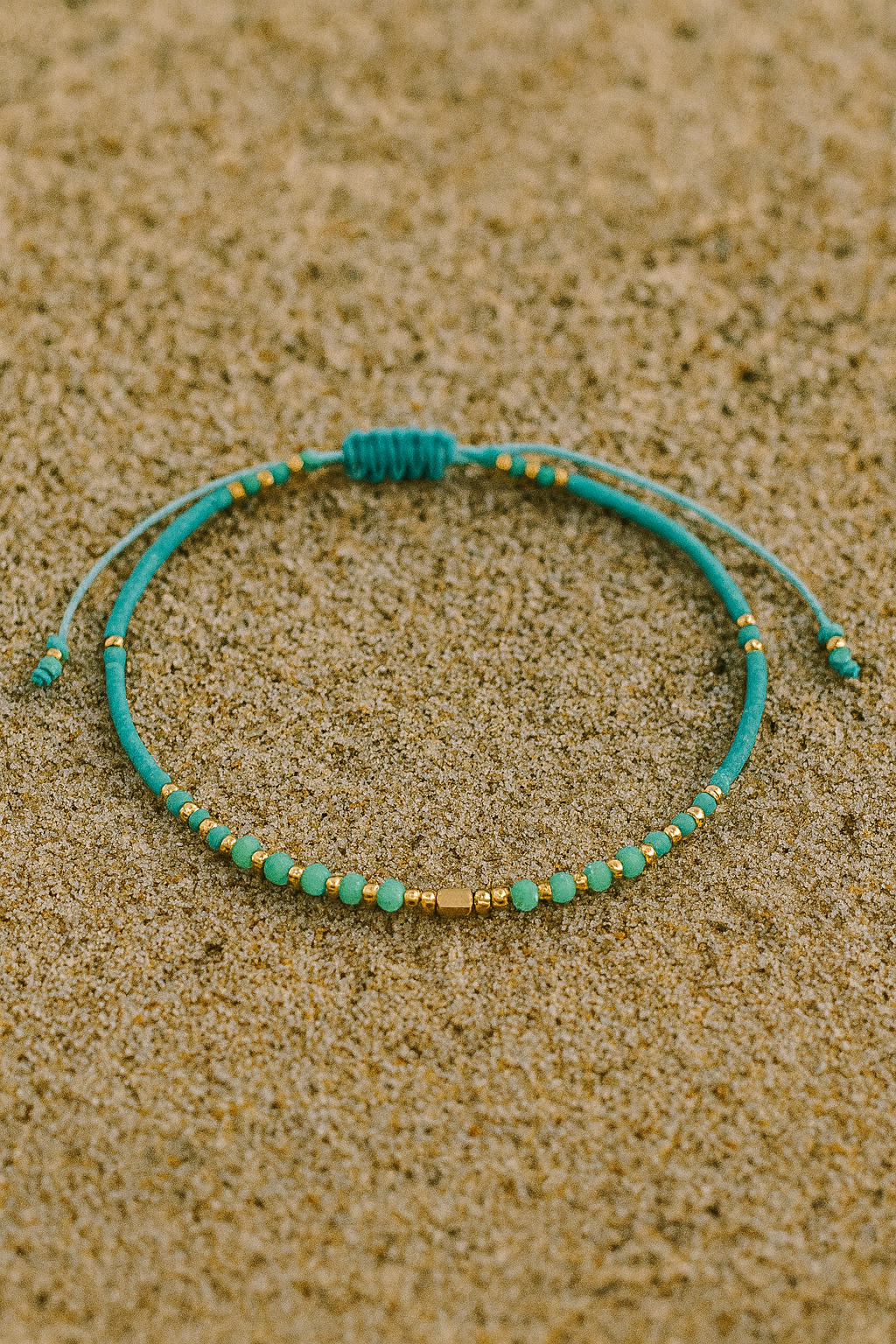 From our Chasing Sunset collection, this adjustable anklet is made with delicate beads and gold details creating a beautiful piece.