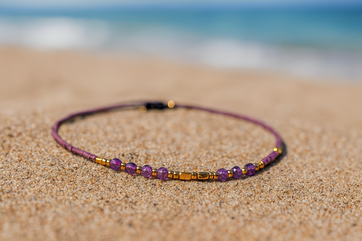 From our Chasing Sunset collection, this adjustable anklet is made with delicate beads and gold details creating a beautiful piece.