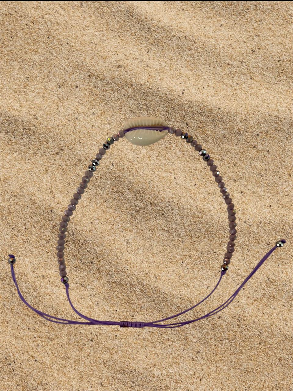 Adjustable Anklet (Colored Beads) Shell charm – Purple