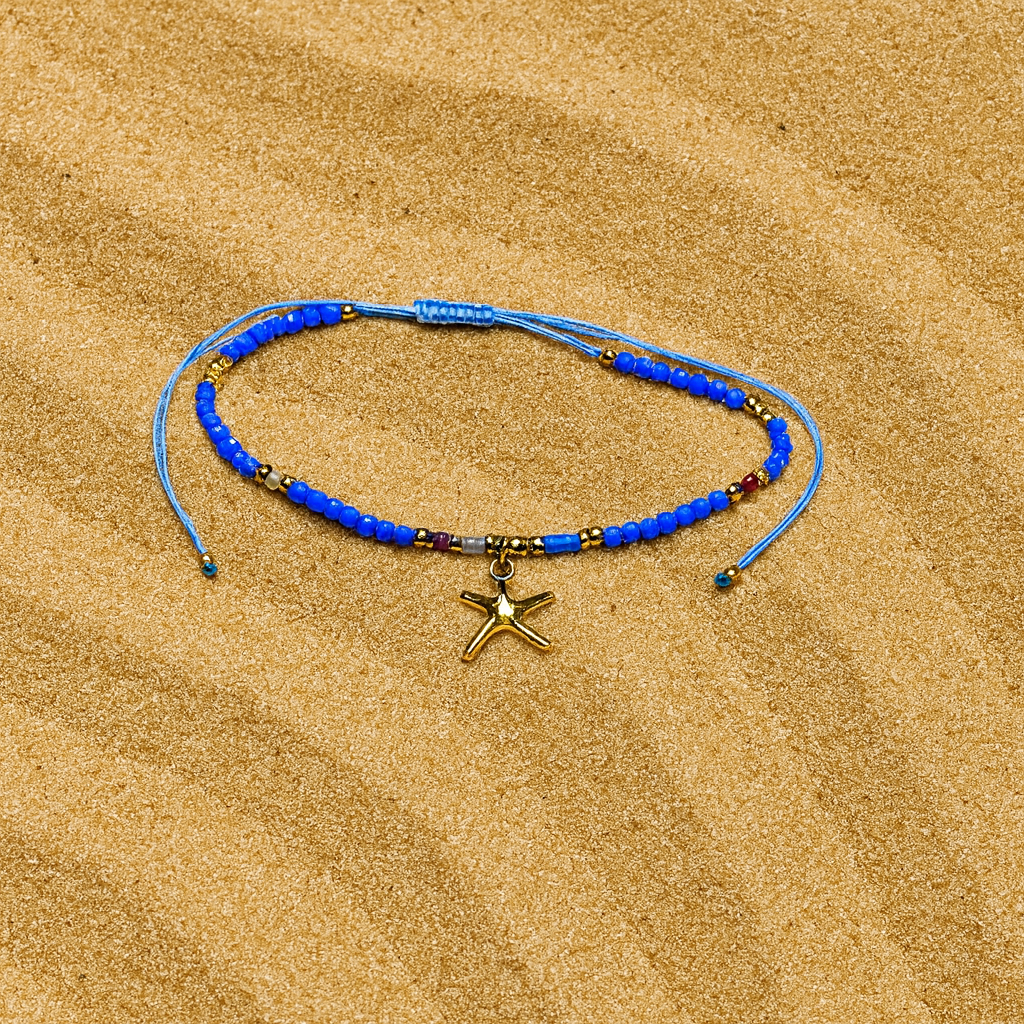Adjustable Anklet (Colored Beads) Star charm – Blue