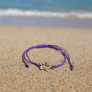 Bracelet made with colored threads and various fun silver designs. Star charm.