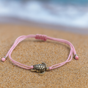 Bracelet made with colored threads and various fun silver designs. Turtle charm.