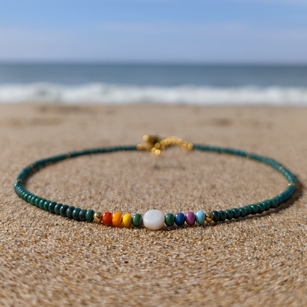 Elegant and minimal, this beaded necklace features a delicate charm that adds a touch of meaning and style. Its lightweight design makes it perfect for layering or wearing on its own for a subtle statement.