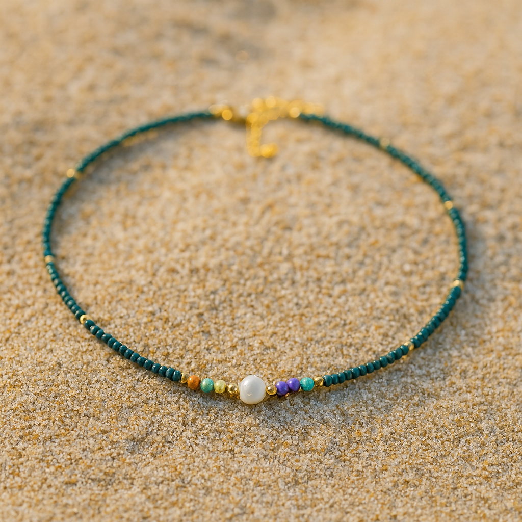 Elegant and minimal, this beaded necklace features a delicate charm that adds a touch of meaning and style. Its lightweight design makes it perfect for layering or wearing on its own for a subtle statement.