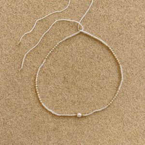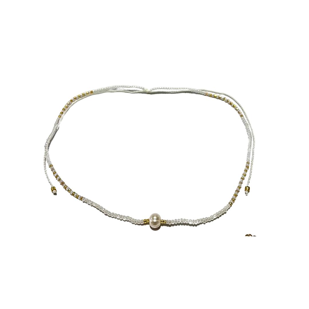 Elegant and minimal, this beaded necklace features a delicate charm that adds a touch of meaning and style. Its lightweight design makes it perfect for layering or wearing on its own for a subtle statement. Pearl charm.