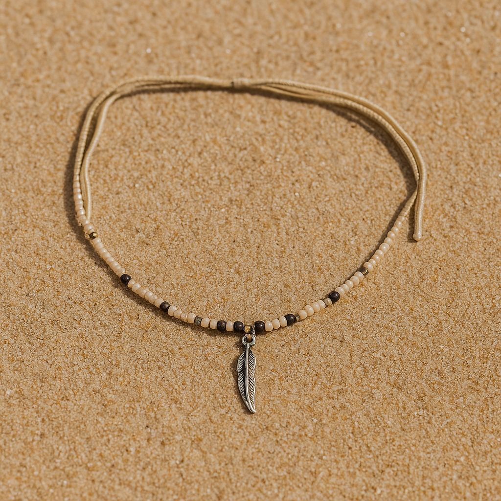 Elegant and minimal, this beaded necklace features a delicate charm that adds a touch of meaning and style. Its lightweight design makes it perfect for layering or wearing on its own for a subtle statement. Pen charm.