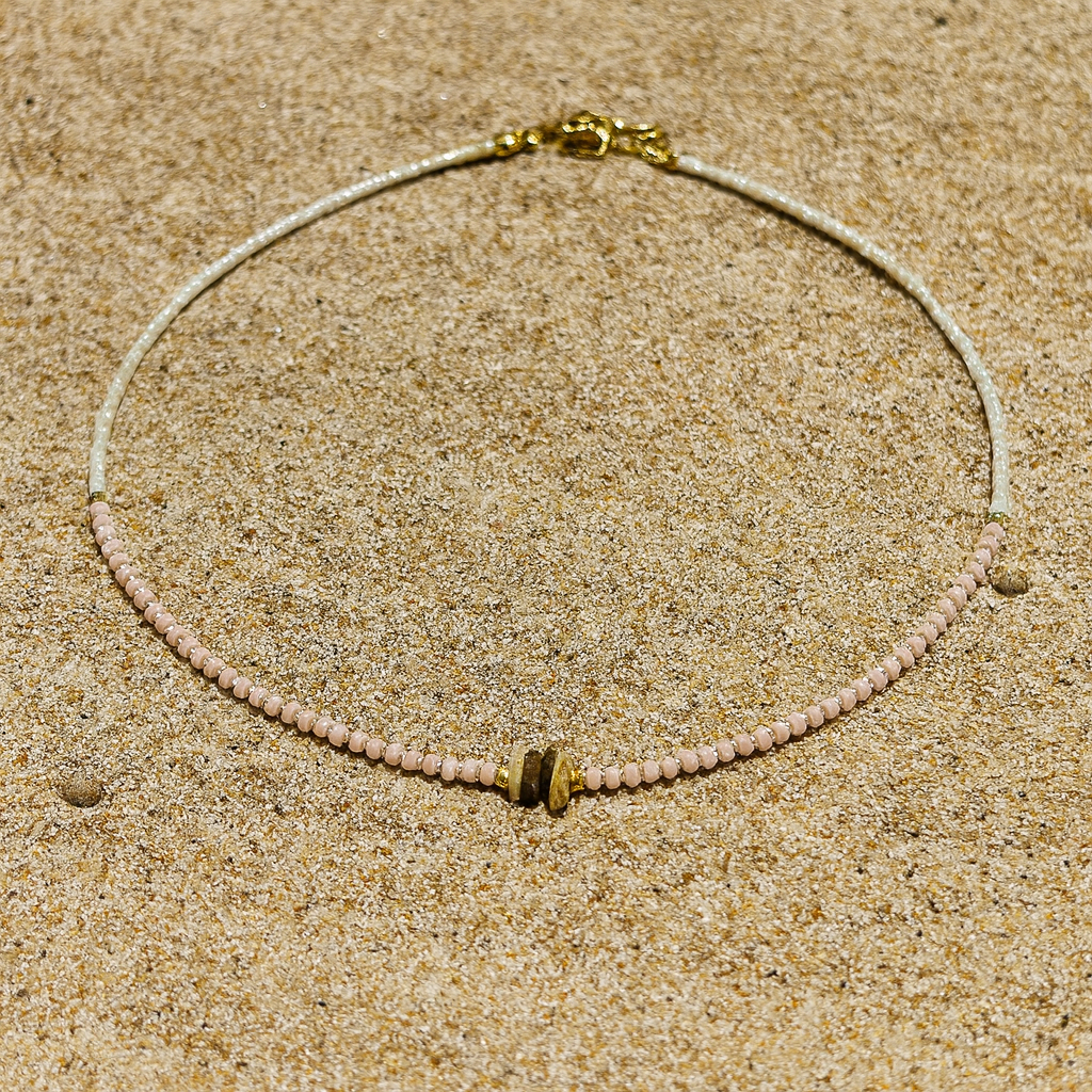Elegant and minimal, this beaded necklace features a delicate charm that adds a touch of meaning and style. Its lightweight design makes it perfect for layering or wearing on its own for a subtle statement. Stones charms.