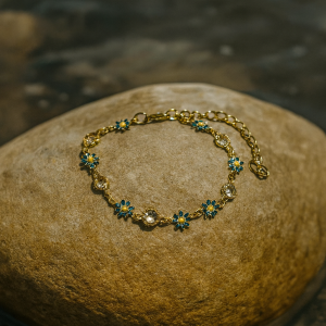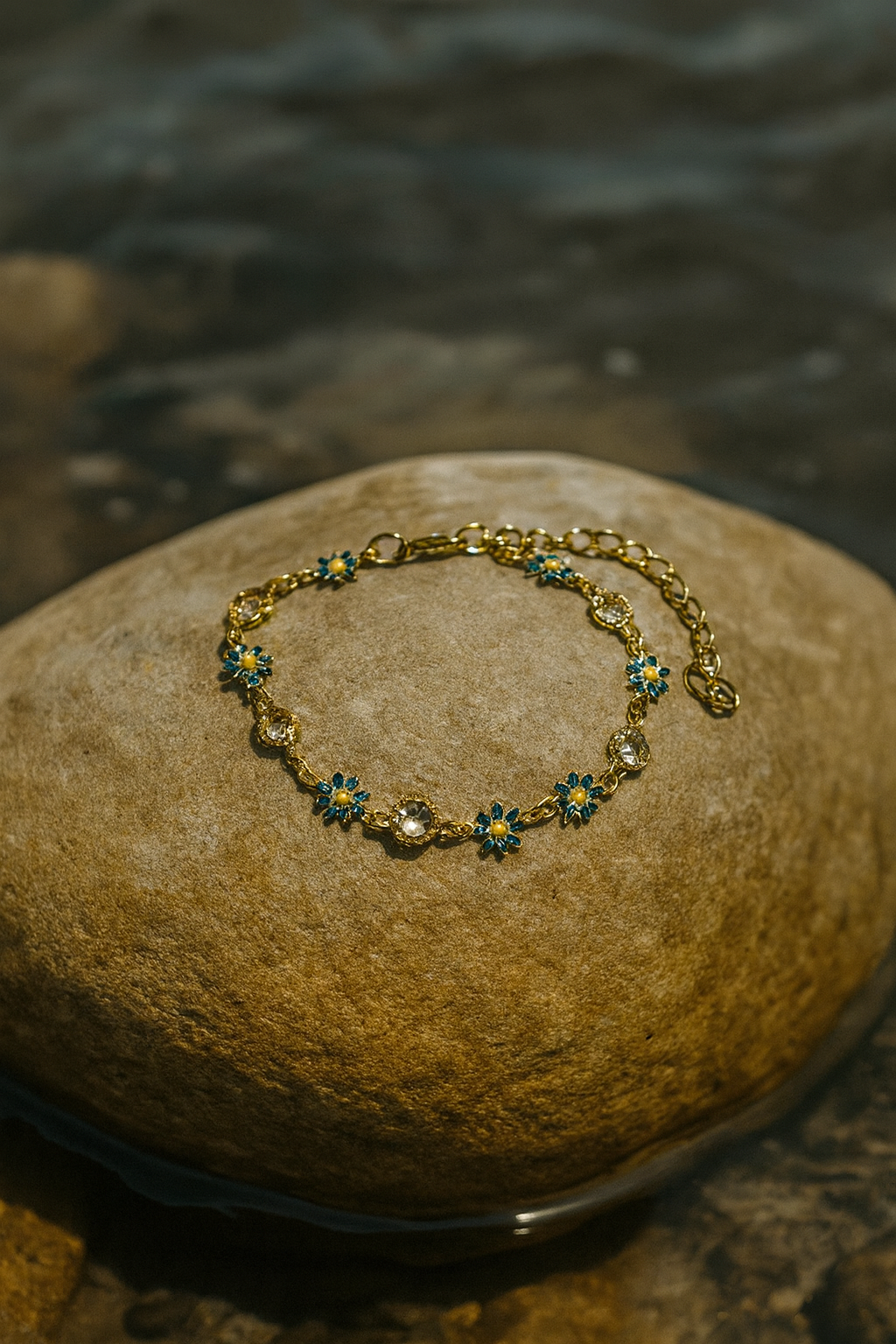 This beautiful anklet combine different types of chains and charms for a dynamic look.