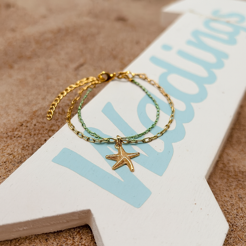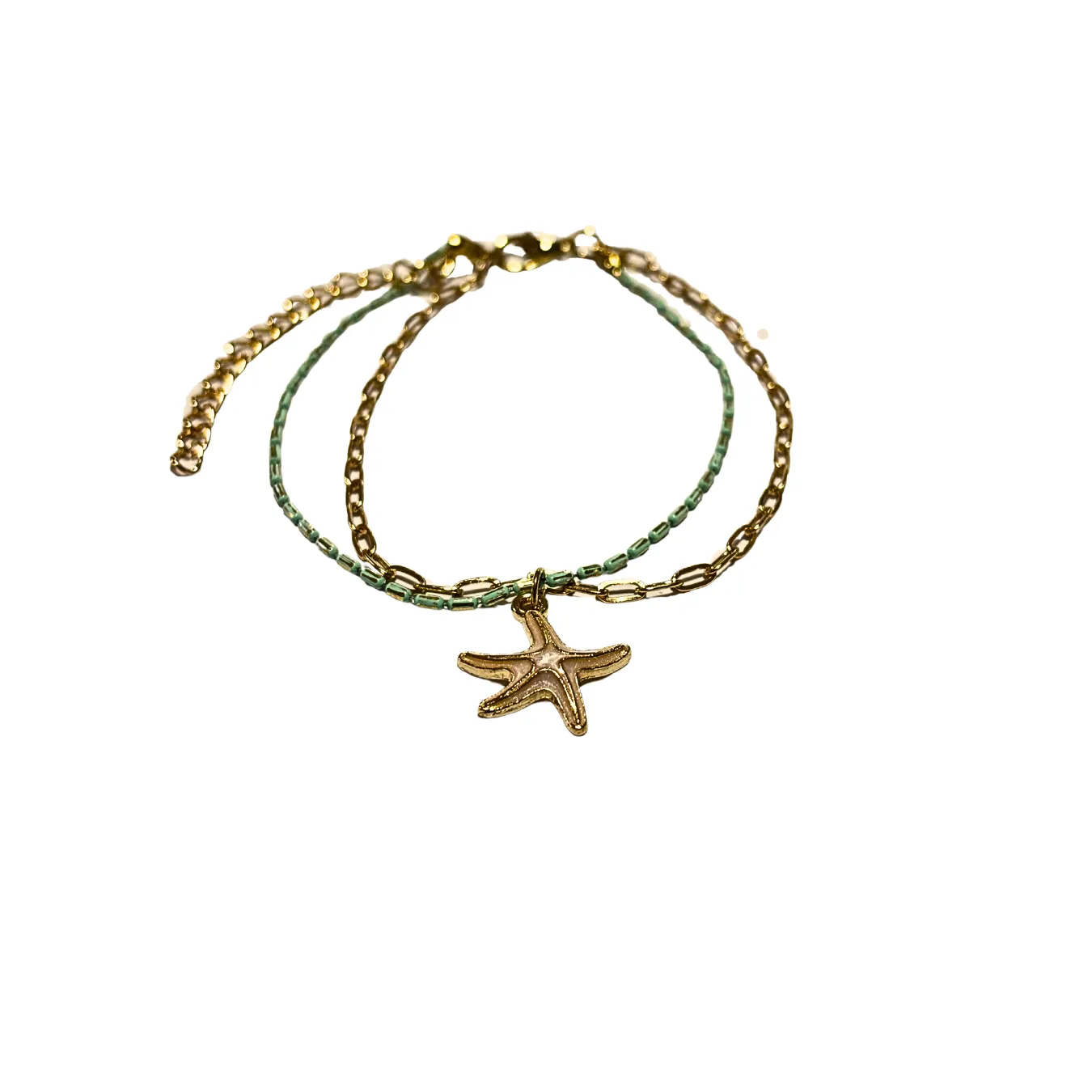 This beautiful anklet combine different types of chains and charms for a dynamic look.
