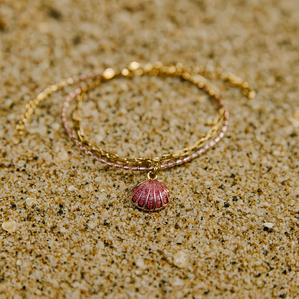 Adjustable Anklet (Colored Beads) Shell charm – Black