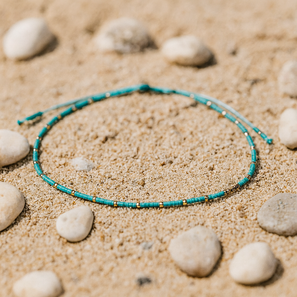 From our collection Making Waves this adjustable anklet is made with high quality Japanese Miyuki beads. This piece gives a look of delicacy.