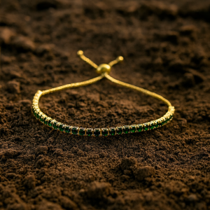 This bracelet has colorful rainstones and is made from durable brass. It’s adjustable and adds a touch of elegance. Stones charms.