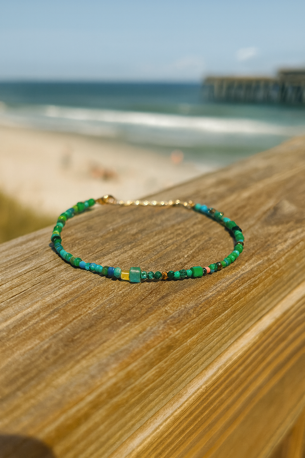 Handmade bracelet from Ecuador, where natural stones of various colors come together to create a vibrant and harmonious design.