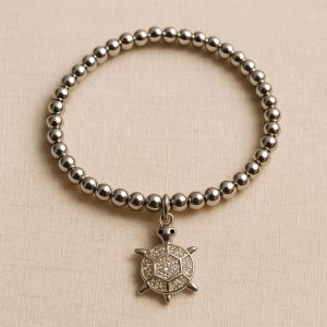 This elastic silver bracelet features a mix of colorful rainstons and designs, creating a vibrant and eye-catching look. Buoy charm.