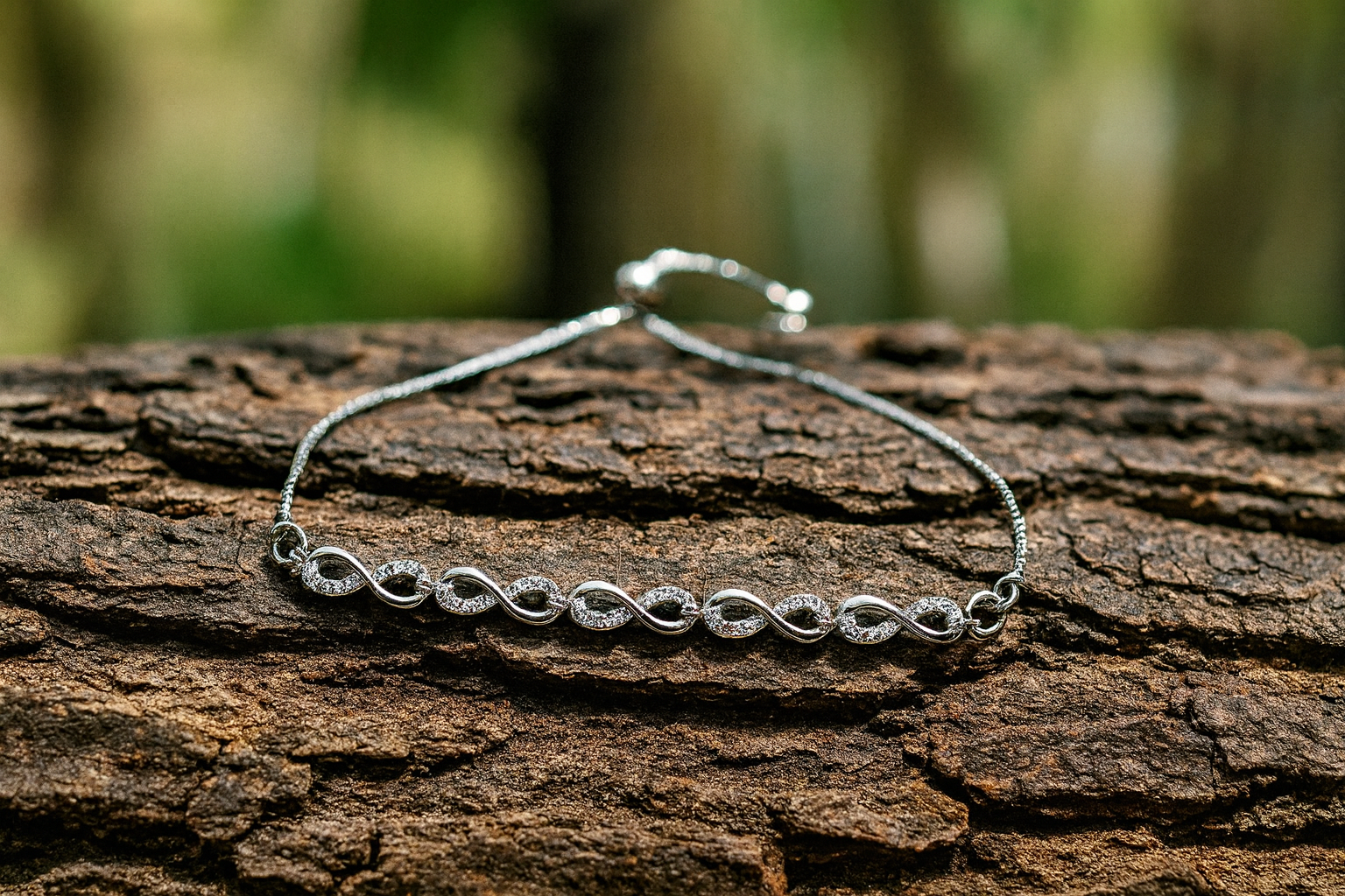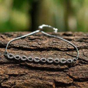 This adjustable silver bracelet features a mix of colorful rainstons and designs, creating a vibrant and eye-catching look. Infinity charms.