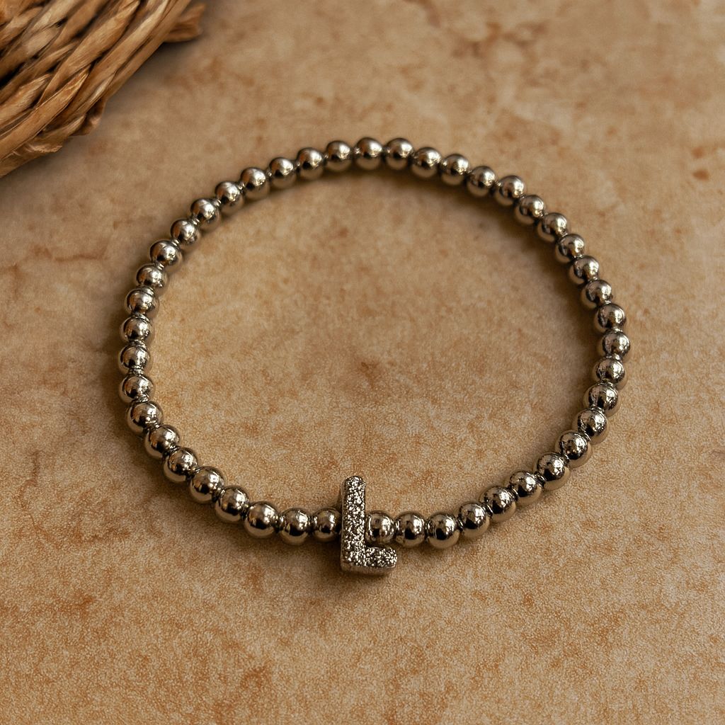 This elastic silver bracelet features a mix of colorful rainstons and designs, creating a vibrant and eye-catching look. L charm.