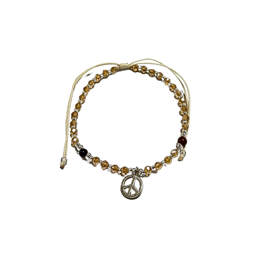 A stylish and versatile bracelet featuring delicate beads and a meaningful charm. Peace charm.